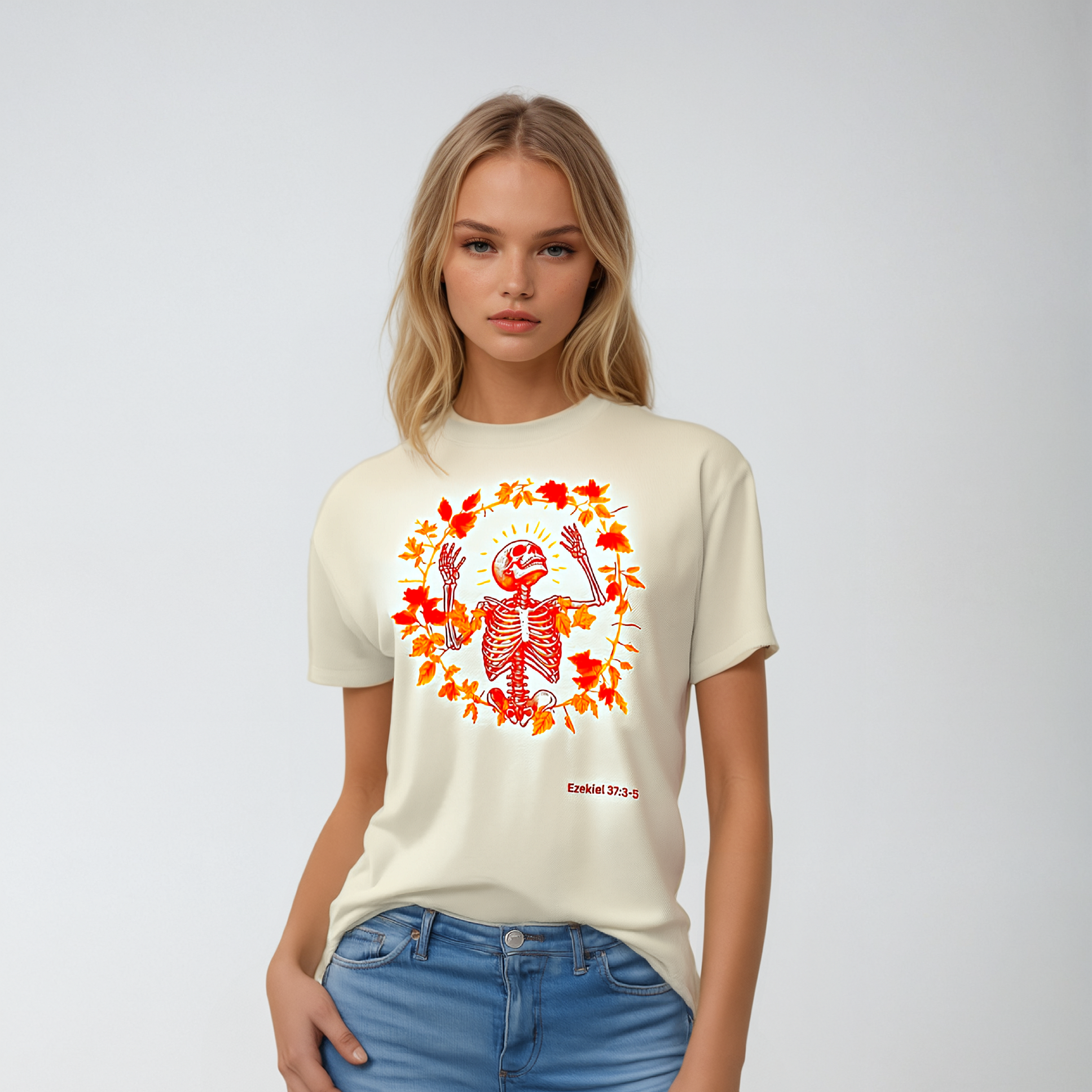 Fast fashion contributes to environmental harm, but our Divine Dry Bones Tee is different. Crafted with sustainably grown USA cotton, it promotes responsible buying. Elevate your fall fashion with a t-shirt that aligns with your values.